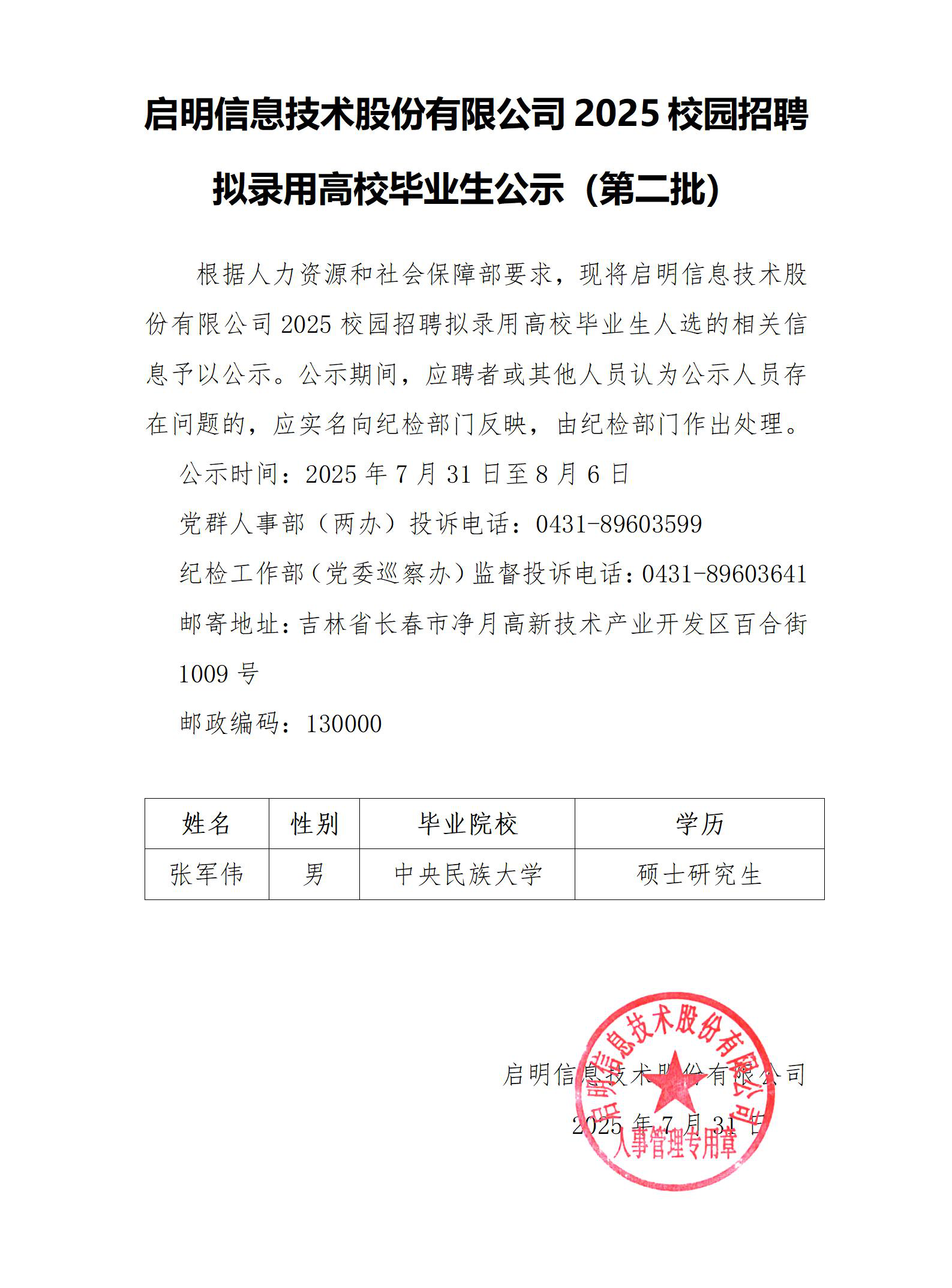 锦鲤体育信息技术股份有限公司2025校园招聘拟录用高校毕业生公示(第二批)