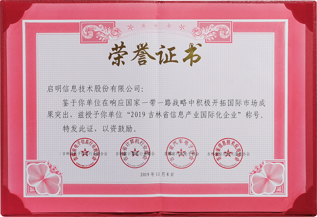 吉林省信息产业国际化企业-2019